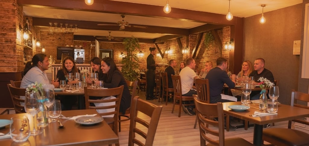 Step inside and you'll immediately feel the difference. This isn't a loud, brightly-lit chain. Our space is "elegant, modern, and inviting." We’ve combined warm lighting, rustic textures, and carefully curated music to create a restaurant with a good atmosphere in Warwick.